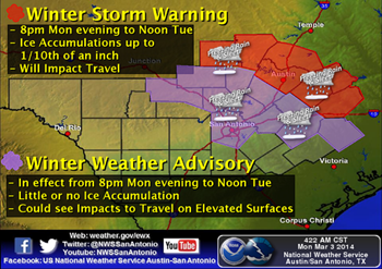 Winter Weather Advisory has been issued for the San Antonio metro from 8:00 pm tonight