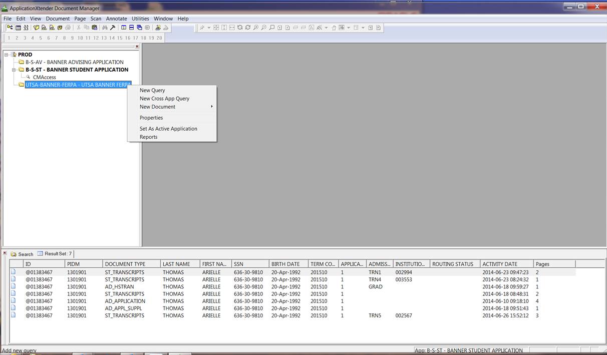 Open Application extender through banner. Right- click on -The UTSA-Banner-FERPA-UTSA