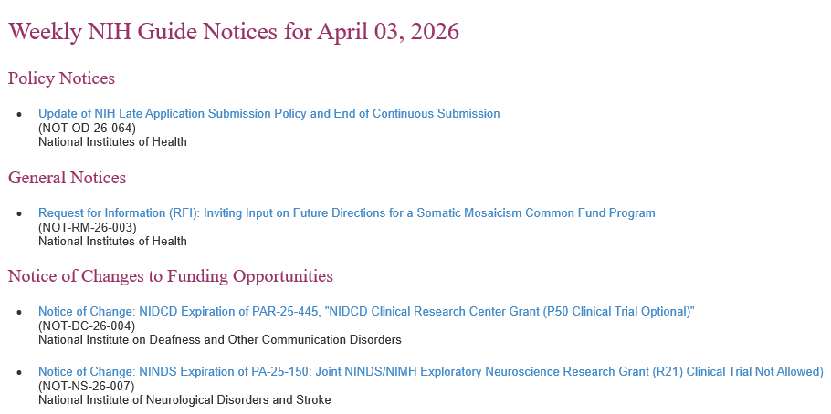 NIH Guide: Weekly Index for April 3, 2026 | Grants &