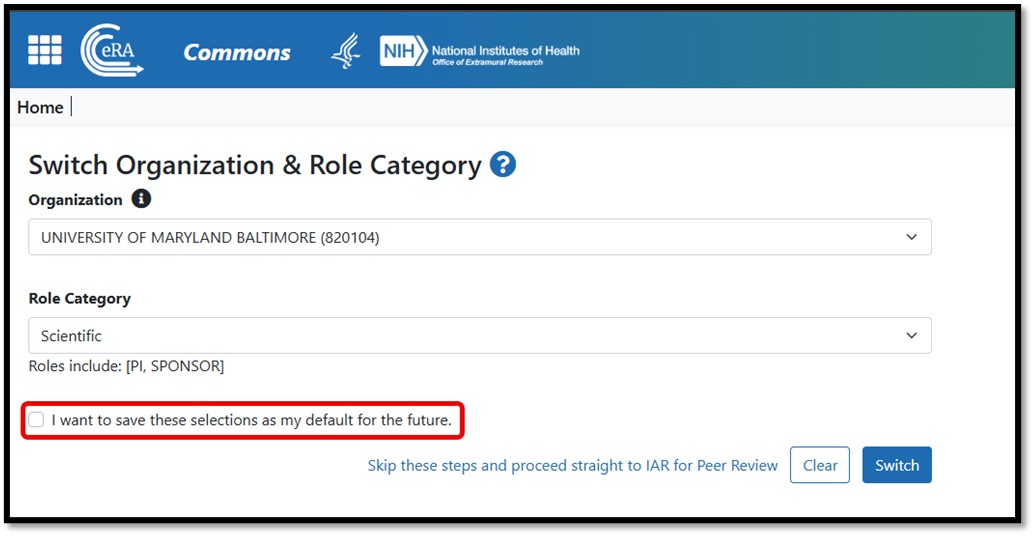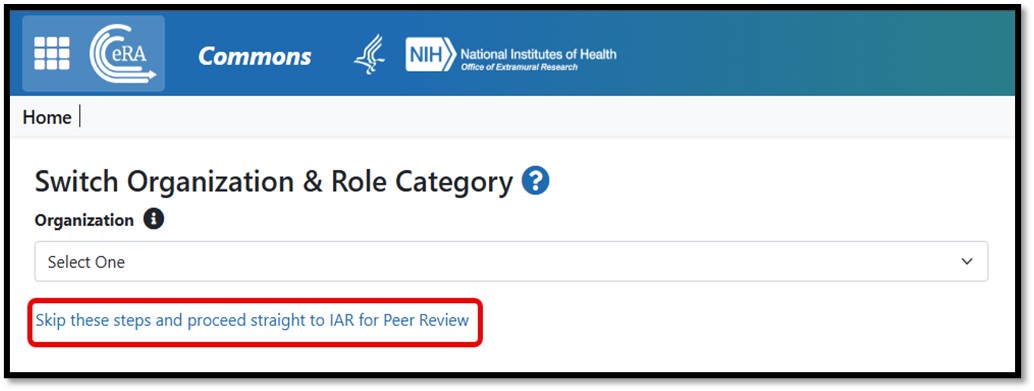 Figure 4: Skip Switch Organization & Role Category Selections for Reviewers